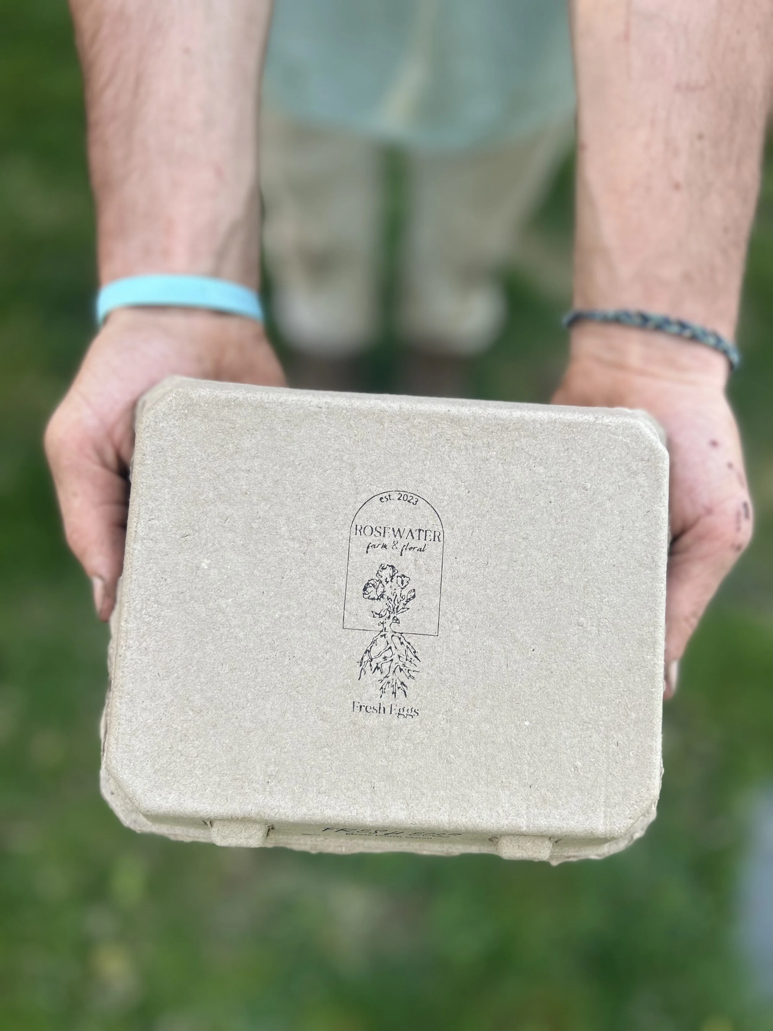 Local eggs from happy chickens! Our chickens get access to pasture and are fed an organic, mineral-rich diet.